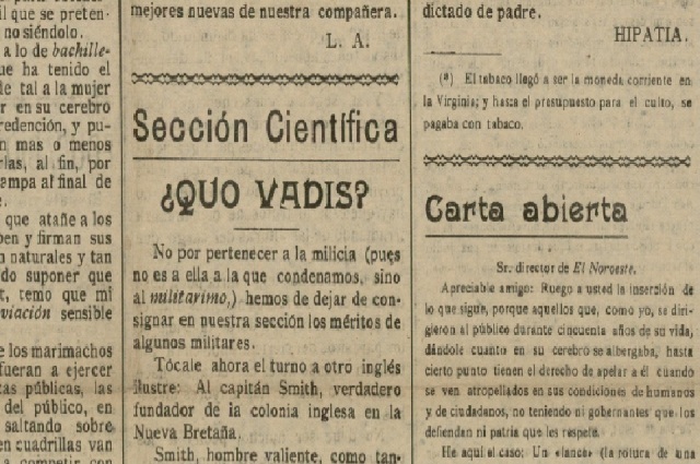 No por pertenecer a la milicia (pues no es a ella a la que condenamos, sino al militarismo) hemos de dejar de consignar en nuestra sección los méritos de algunos militares.